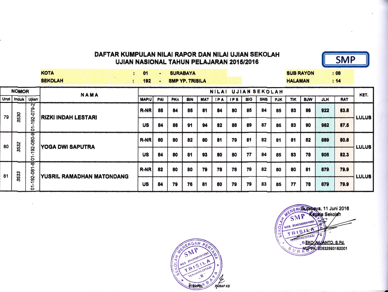 Demikian informasi kelulusan SMP Trisila Surabaya Tahun Pelajaran 2015-2016.
